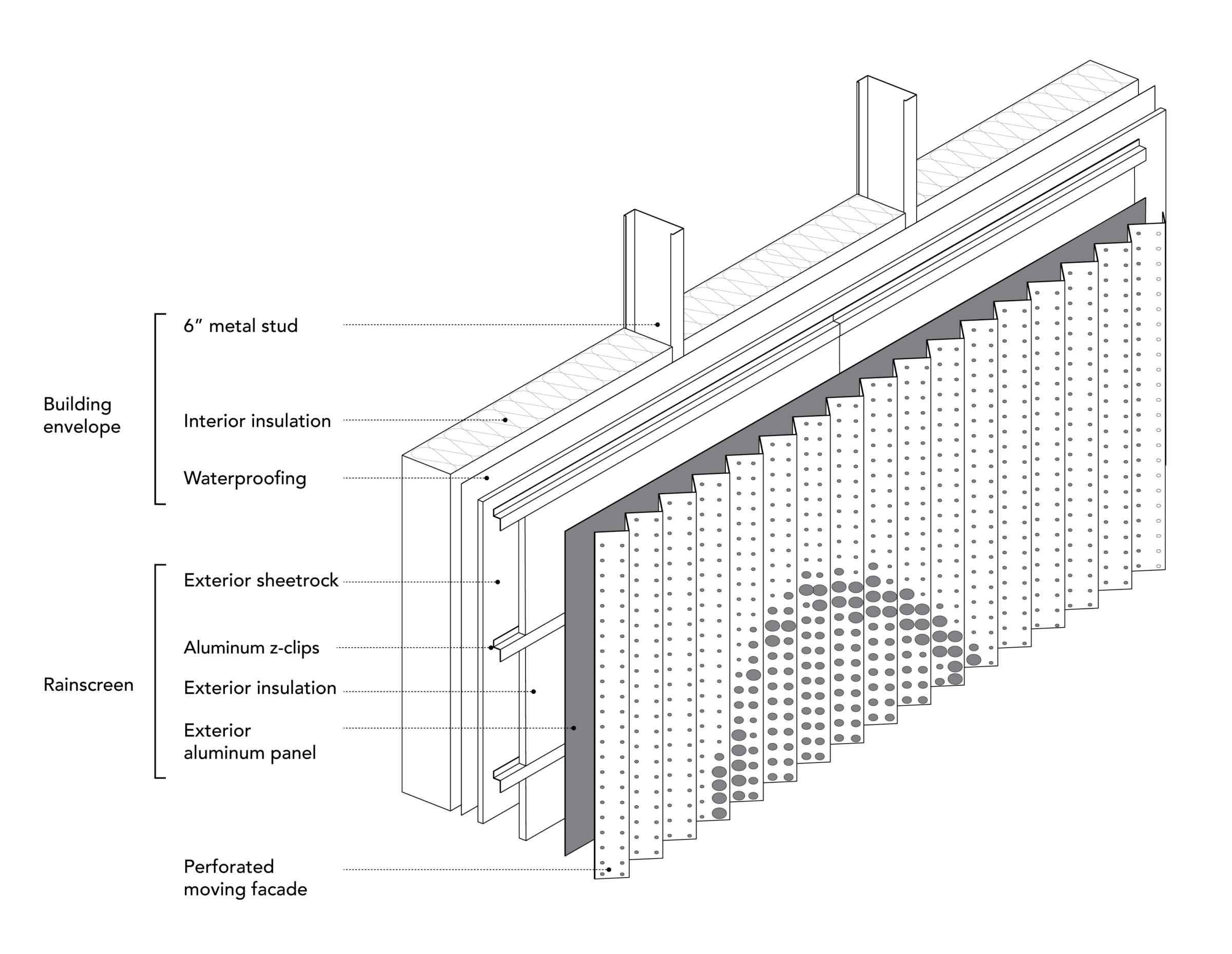 Fabrication itself introduced inevitable imprecision. While the perforated sheets were cut efficiently, folding the panels proved less exact. Minor variations accumulated as the metal was bent, subtly changing panel dimensions. Architect-Led Design Build allowed these tolerances to be absorbed during installation without compromising the overall effect. Precision mattered where it counted; flexibility did the rest.